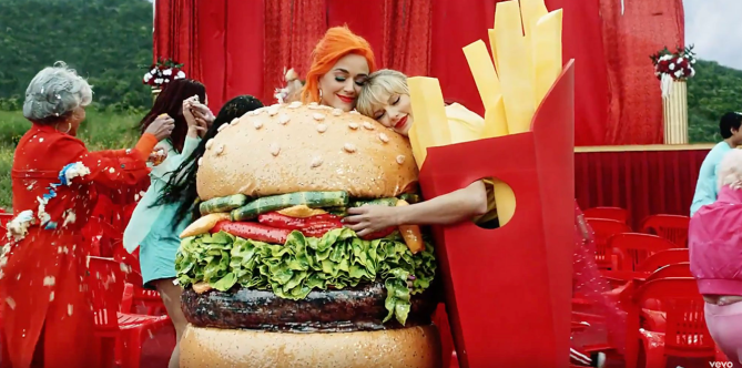 If you’ve been paying attention, Swift and Perry have finally squashed their long-held feud. They’ve been gifting each other things like chocolate chip cookies and olive branches and sharing them on IG. Now, they are appearing publically together in “You Need to Calm Down” dressed as hamburger and French fries and embracing one another. Cute.